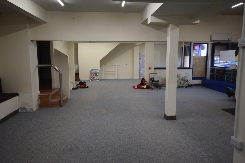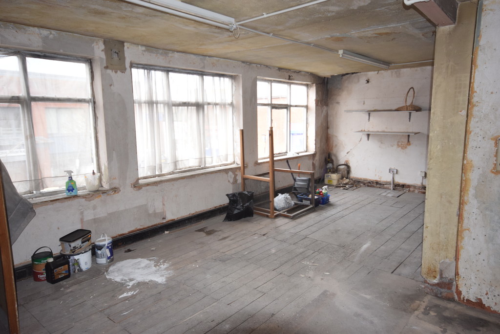 A single door entrance, a double door entrance, 2 shop front windows and a single door entrance from street to the small store room which could be used to add stairs to the first floor.