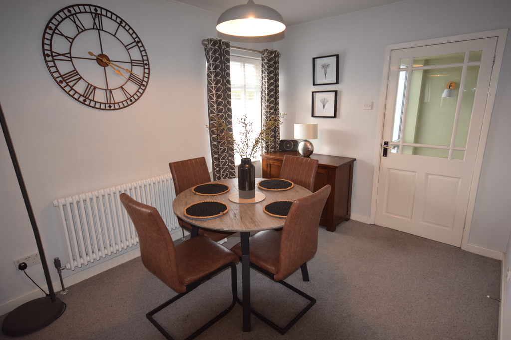 LOUNGE 21' 3" x 15' 4" (6.50m x 4.69m) L-shaped lounge/diner with double glazed bay window, double glazed window, feature fireplace with wood burner style fire, radiator and doors to