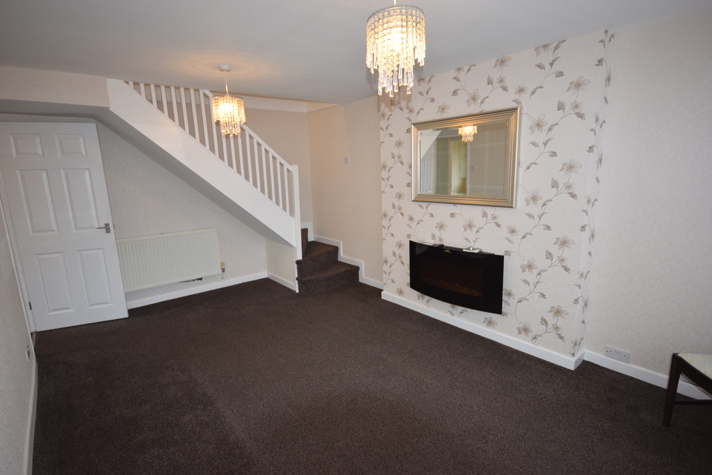 LOUNGE 10' 11" x 16' 6" (3.33m x 5.03m) Double glazed window, radiator, wall mounted fire, spindle staircase to first floor and double doors to