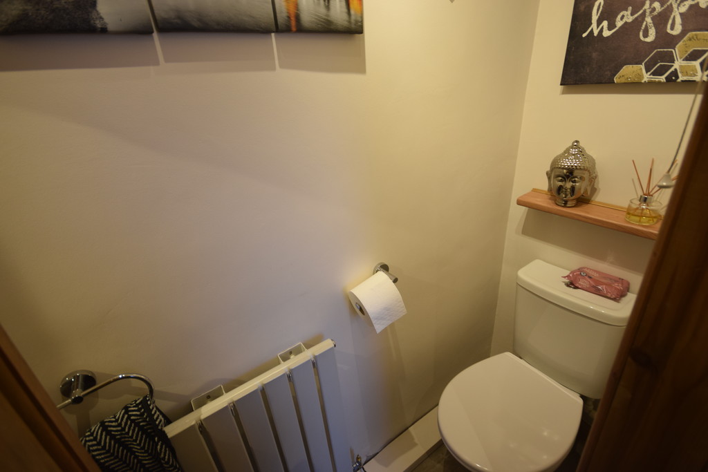 CLOAKS/WC Low level WC, radiator, handwash basin with taps, vanity unit