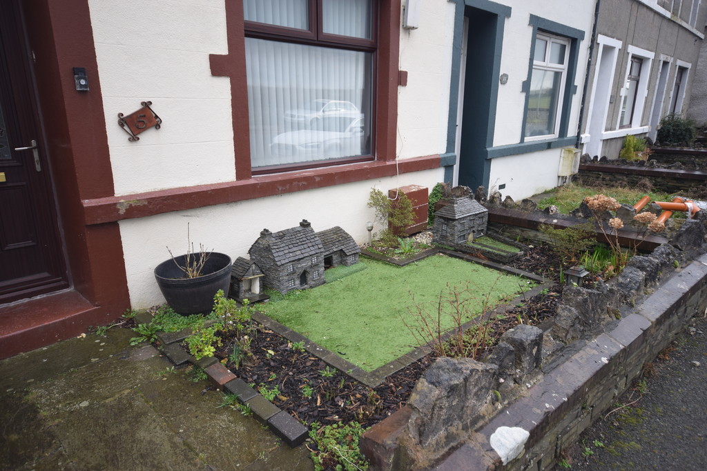 FRONTAGE Gate to forecourt front garden area with artificial grass and double glazed door to