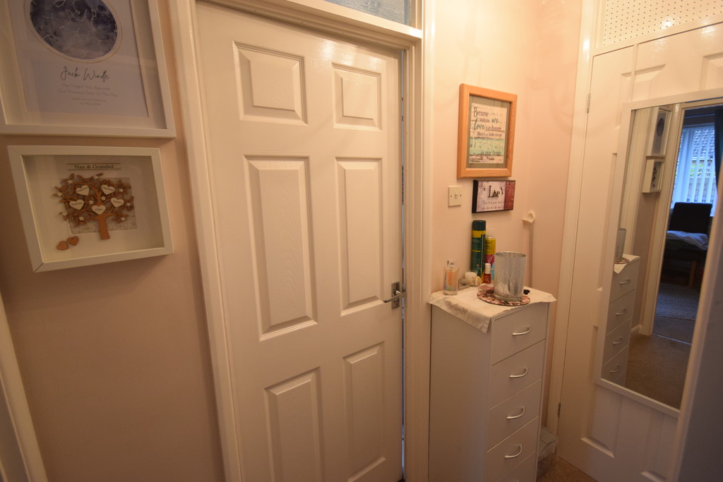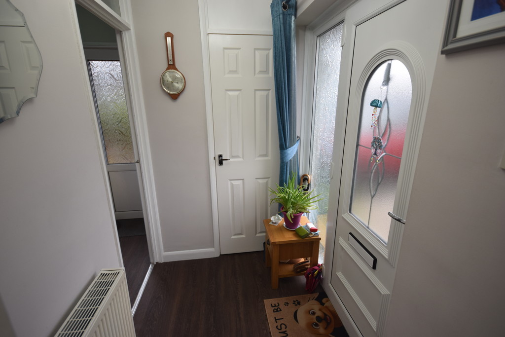 ENTRANCE HALL Lino flooring, radiator, storage cupboard and doors to