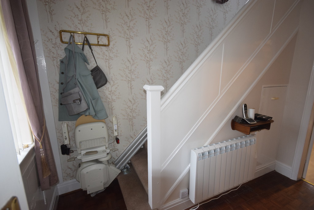 ENTRANCE HALL Double glazed windows, stairs to first floor, storage heater, coved ceiling, understairs storage and doors to