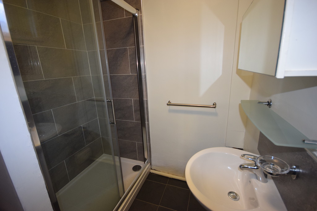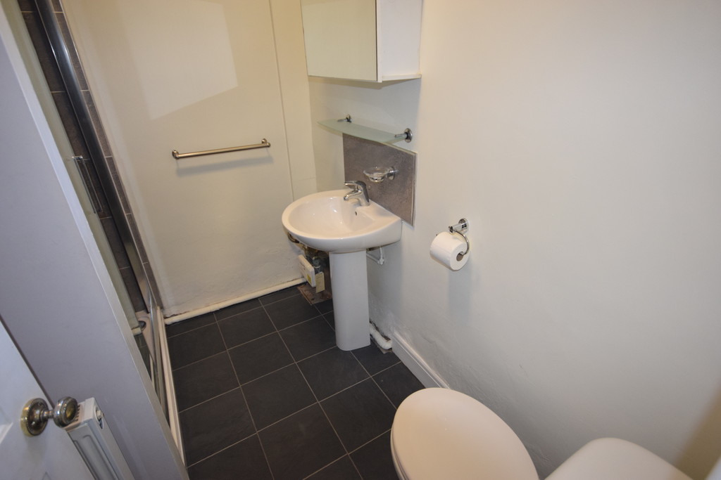 GF SHOWER ROOM Radiator/towel rail, double glazed frosted window, low level WC, pedestal hand wash basin with mixer taps, walk-in shower cubicle with double headed shower, tiled splash and tiled flooring