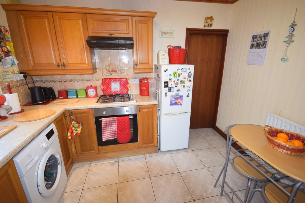 KITCHEN/DINER 10' 6" x 9' 11" (3.22m x 3.04m) Double glazed window, radiator, fitted wall base drawer units with worktops to compliment, inset stainless steel sink with mixer taps, integrated oven, 4-ring hob with extractor over, plumbing for washer, tiled splash, tiled flooring, understairs storage and door to
