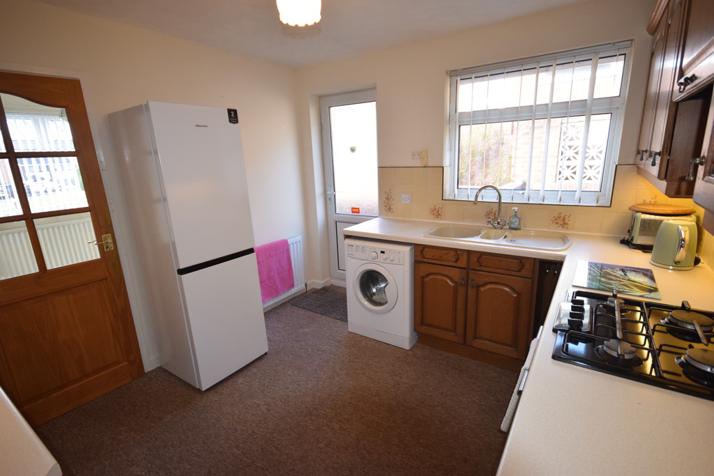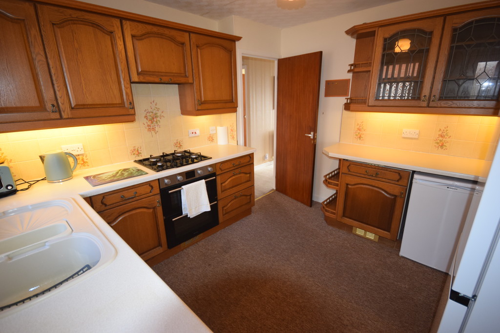 KITCHEN 10' 2" x 11' 1" (3.11m x 3.40m) Double glazed window, double glazed door, radiator, fitted wall base drawer units with worktops to compliment, 1 1/2 bowl sink with mixer taps, integrated oven, 4-ring hob with extractor over, tiled splash and plumbing for washer